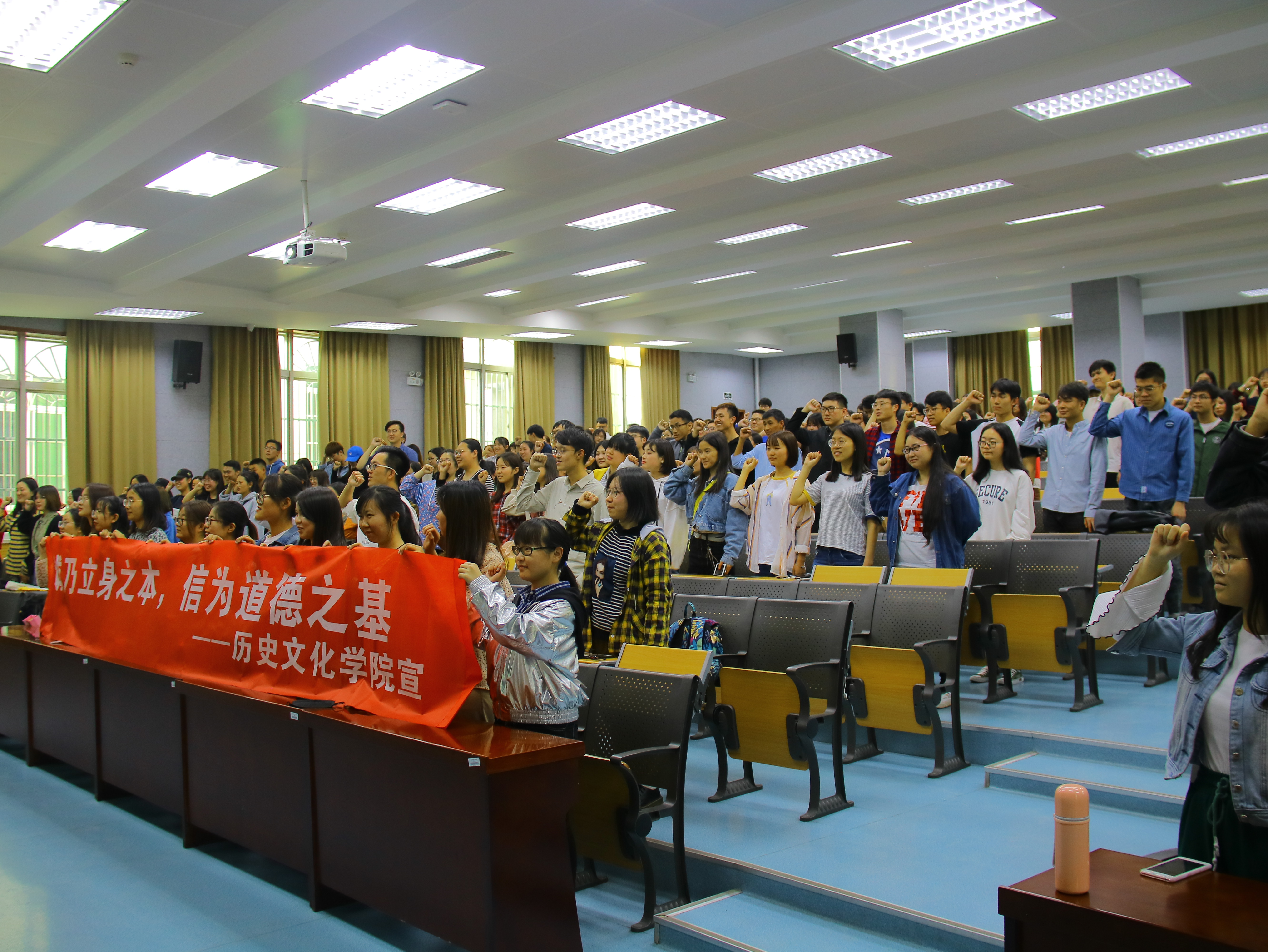 为配合公司第十七届“员工诚信教育活动月”系列活动部署,引导青年员工讲诚信、树诚信、践诚信,公司于4月7日在文渊楼4202教室开展了诚信签名宣誓活动。辅导员王欢和全体2016级本科生参加了活动。本次活动分为诚信宣誓、诚信签名两个环节。