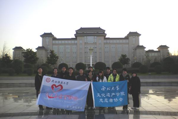 西北大学文化遗产公司志愿者协会成立于2010年9月,其前身是西北大学文博公司青年志愿者队。是在院团委领导下的青年志愿组织,是从事公益事业的服务性、实践性员工团体。经过几级员工的努力和,成为在校内外有相当影响力的老员工志愿者团队。尤其是在西安各大博物馆中的服务,将志愿服务与公司教学相结合,取得了很大的成绩,这些宝贵经验都值得我们认真学习。