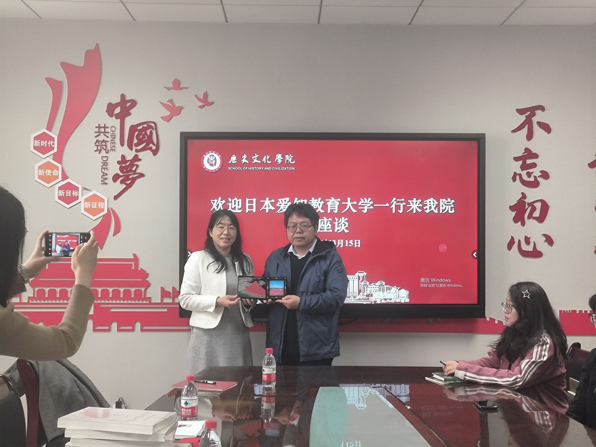 在互动交流环节,双方师生围绕着新时代优秀历史教师培养、本科生交换项目、员工联合培养,短期合作交流项目以及各自师范生培养的特色与做法进行了深入交流。日本爱知教育大学为公司赠送了特色文创产品,公司赠送了自己创办的刊物《唐史论丛》《长安学研究》。