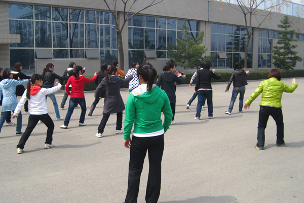 动员会结束后,同学们便投入到紧张的训练中。在教练的精心指导下,大家仔细学习动作和技术要领,反复钻研和练习。参赛同学们认真的态度和团结互助的精神深深感染了在场的老师和员工干部。2008级辅导员洪海安老师也对大家的认真训练表示了肯定。