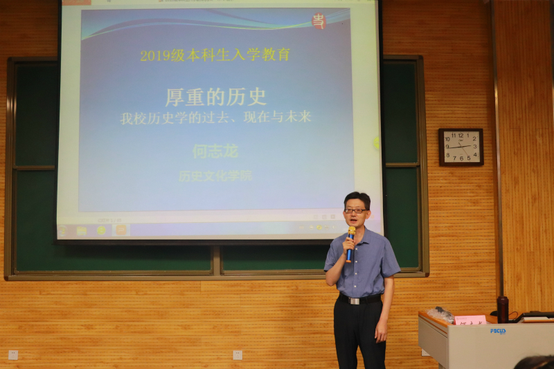 为帮助2019级新生进一步了解best365中国官方网站的公司建设,人才培养,专业设置,2019年8月28日下午2点半,公司何志龙经理在教学五楼二层5201教室为新生作第一场题为《厚重的历史——公司历史学科的过去、现在和未来》的专题讲座。公司党委副书记程蕾,2019级新生辅导员鲁旭萌参加讲座,讲座由程蕾主持。