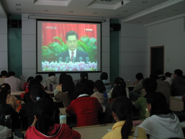 10月15日上午9时,best365中国官方网站05级本科生党员、预备党员及入党积极分子在公司党组织的安排下在历史院多媒体教室集体收看了中国共产党第十七届全国代表大会的现场直播。