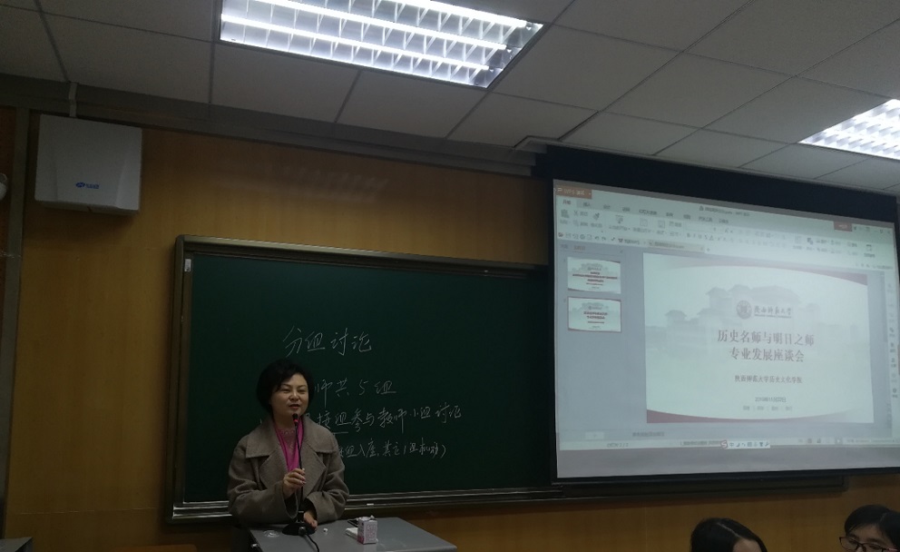 为帮助教育硕士了解教育实践,明确专业发展的路径和方向,11月22日上午,公司历史教育研究中心和教师干部培训公司“国培项目”培训班联合策划的“历史名师与明日之师专业发展座谈会”在文渊楼1段1312多媒体教室成功举办。本次座谈会由蔡娜副教授主持,公司教师干部培训公司“教育部国培计划示范项目全国高中历史教师培训”项目40余位来自全国不同省份的高中历史教师代表以及公司2019级全体学科教学(历史)教育硕士研究生参与座谈。