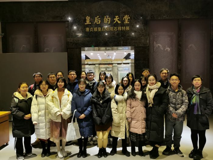 为了创新公司公司产品模式,进一步加强馆校合作,2019年12月31日下午,公司2019级文博专业研究生21人在杨瑾老师的带领下走进陕西历史博物馆,进行博物馆学理论与实践现场教学活动。此次活动分为课堂讲授和展厅导览参观两部分。在课堂授课环节,陕西历史博物馆副馆长程旭博士首先综述了陕西的地理、文化与遗产概况,以此为背景又详细介绍了该馆1712万件藏品的基本情况、历史意义与文化定位及当今价值。随后程旭博士带领同学们来到该馆不对外开放的库房式展厅——《皇后的天堂——唐贞顺皇后敬陵石椁特展》进行实地讲授。他先对唐贞顺皇后——武惠妃的生平概况进行简单介绍,着重对“敬陵石椁”进行详细介绍:唐贞顺皇后石椁被盗墓分子百万美金贩卖至境外后消失,该石椁在外漂泊6年后,被公安机关成功追回。武惠妃石椁上的装饰图案,不仅具有鲜明的盛唐时代特征和极高的艺术水平,而且其丰富的文化内涵与装饰艺术手法为我们研究唐代丧葬制度以及开元盛世贵族妇女的服饰、妆容、审美习惯等提供了丰富的第一手资料。接着,程旭博士带领同学们近距离观察石椁周身装饰,浮雕线刻的图案主要内容有珍禽瑞兽、花草树木、侍女人物等。结合研究生课程知识和讲座内容,为我们研究唐墓壁画和东西文化交流提供了实物资料。