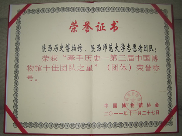 “第三届中国博物馆十佳团队之星”称号