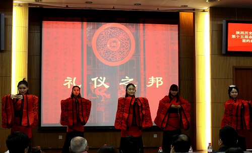 “志在文博,爱在我心”——陕历博以十五年来的志愿服务工作视频展示拉开了第十五届注册签约仪式帷幕。仪式伊始,陕西历史博物馆党委书记强跃进行了致辞,强书记在讲话中分别向15年来给予陕历博志愿者工作大力支持的各校领导、老师和付出艰辛努力的志愿者们表达了诚挚的谢意,对陕历博志愿者队伍十五年来所做的贡献及社会影响力给予了高度评价,并表示希望志愿者们努力提升自己,更好的服务于众。公司青年志愿者协会陕博队的五位队员在此仪式上献上她们精心编排的舞蹈——“礼仪之邦”,赢得如潮掌声。颁奖环节后,陕西历史博物馆党委书记强跃与公司党委副书记程蕾签署并交换2017年工作协议书。最后,在全体志愿者们的庄严宣誓中,注册签约仪式圆满结束。