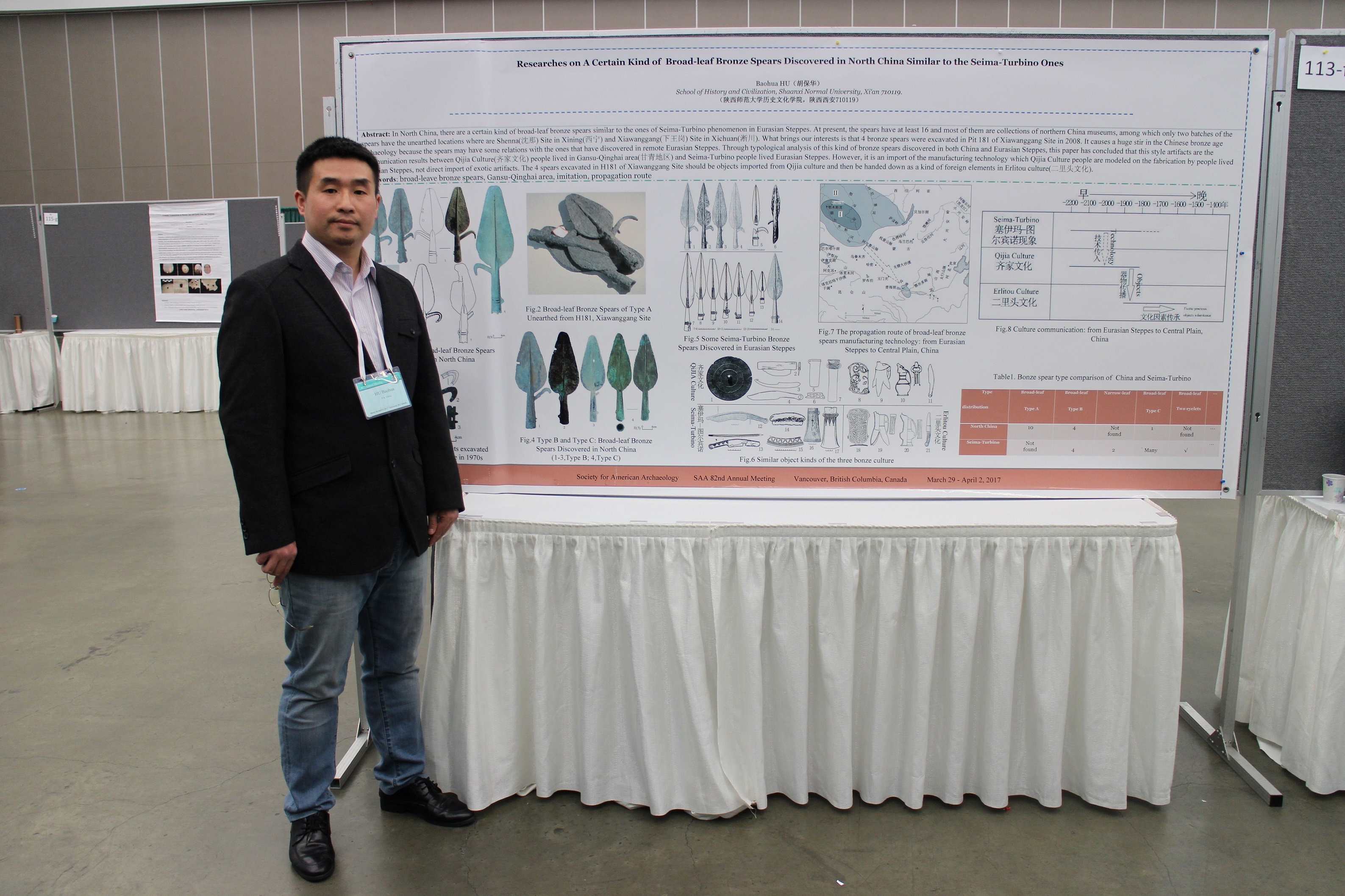 参会期间,胡保华博士选听了Cultural Contacts Along the Silk Road During The Early Bronze Age(早期青铜时代丝绸之路沿线地带的文化交流)、Archaeology in China(中国考古)等研讨会的讲座,并与参会学者进行了和谐融洽的学术交流。胡保华博士还在Archaeology in East Asia(东亚考古)的Poster Session环节,对最新研究成果进行了张贴汇报,引起众多学者包括密苏里大学Michael D. Glascock教授的浓厚兴趣。