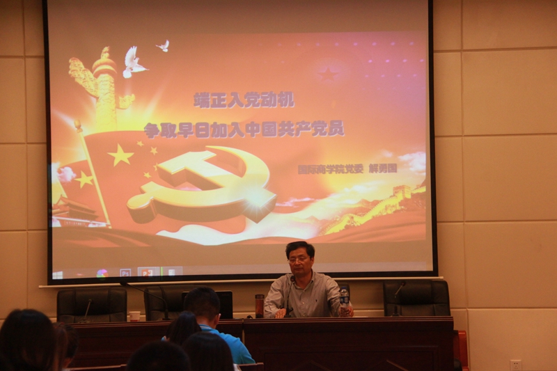 开班典礼结束后,本期入党积极分子第一节党课培训正式开始。国际商公司党委书记解勇国老师为大家做了以“端正入党动机,争取早日加入中国共产党”为题的讲座。解勇国老师以入党动机为主体,从树立正确入党动机的要求、端正入党动机的主要实践途径、争取早日加入党组织等方面展开了讲座。对大家提出了严格的要求,希望大家树立正确的党员标准、为人民服务的态度,争取早日加入中国共产党。