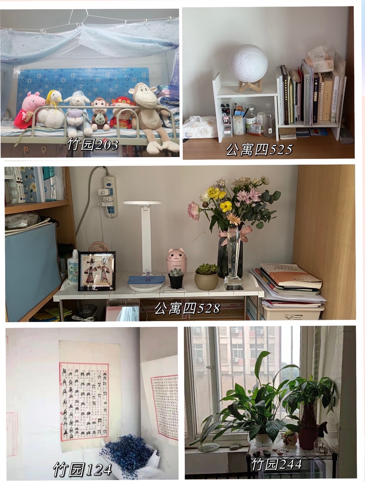 党员模范宿舍:竹园G1-123、竹园G1-244、公寓四楼528、公寓四楼516