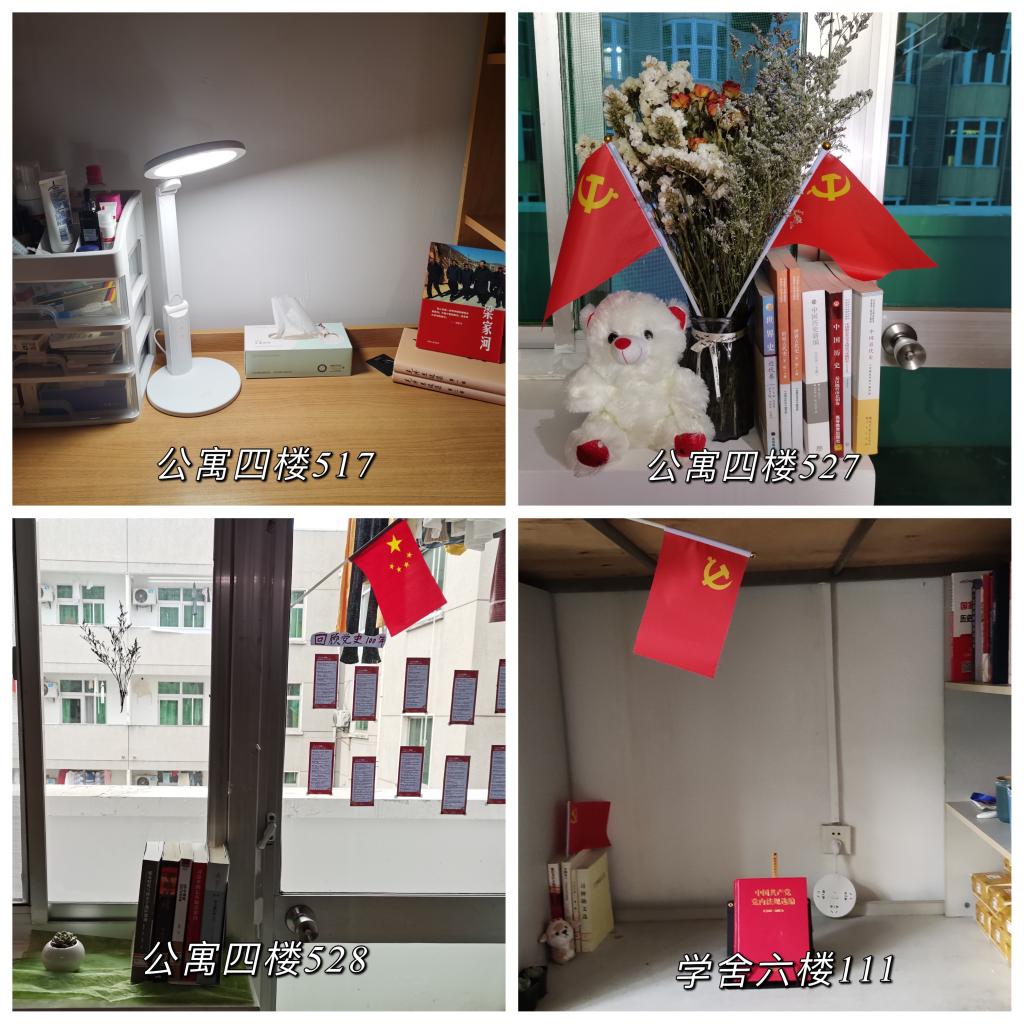 今年逢迎中国共产党建党一百周年,为深化党史教育,弘扬红色精神,此次宿舍文节与喜庆建党一百周年紧密结合,号召同学们坚定爱国信念,践行爱党行动。同学们纷纷自主将红色元素注入到寝室文化建设当中,不仅展现了公司研究生赤诚的爱国情怀和对中国共产党的无限致敬,也映照着同学们以实际行动传承中国共产党伟大精神的责任担当和坚定脚步。