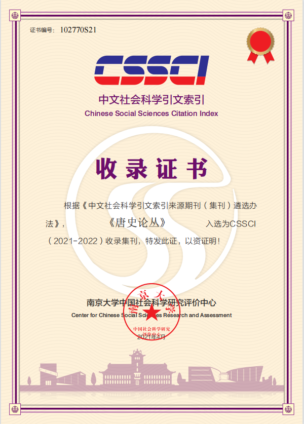 近日,南京大学中国社会科学研究评价中心中文社会科学引文索引指导委员会评出CSSCI(2021-2022)来源集刊,公司唐史研究所和中国唐史学会联合主办的《唐史论丛》再次入选。