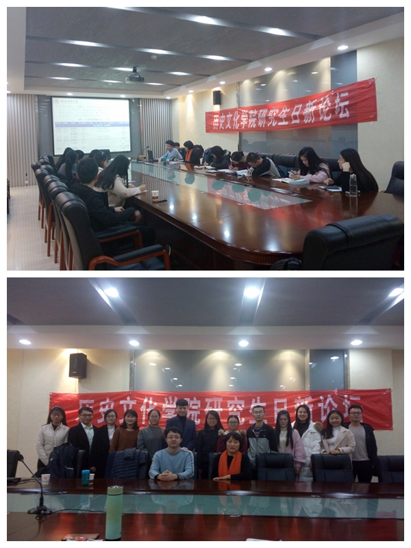 报告结束后,肖爱玲副研究员对报告内容作了评述。她认为赵力扬博士在此次报告中使用的理论非常恰当,对文献资料的梳理也十分细致。肖爱玲认为目前古都学研究走向细化,研究的突破应该从理论、视角、文献三方面入手,题目的关注点也应紧紧结合社会背景。随后,同学们热情提问,肖副研究员对每个问题都做了细心的解答,现场学术氛围浓厚。论坛最后,全体师生合影留念。此次论坛不仅丰富了同学们的知识储备,扩大了同学们的研究视野,还增进了师生之间、同学之间的深厚情谊。