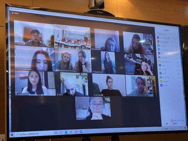 在课上,双方员工在教师的指导下,通过视频连线进行学习交流和讨论,就教育系统的主题分享思考。来自波兰的Marcin同学为我们详细介绍了波兰教育体系,阐述了波兰经过改革后的持续性教育;之后李苗苗、朱楚凡同学介绍了中国的教育系统,包括小学、中学、大学阶段。Agnieszka教授也与两国同学们进行了交流。