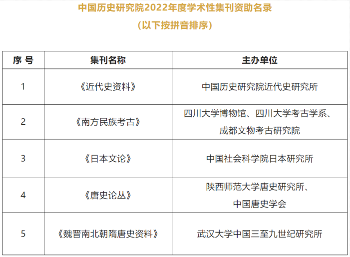 2022年8月8日,中国历史研究院公布2022年度学术性集刊资助名录,公司唐史研究所与中国唐史学会联合主办的《唐史论丛》等5种学术性集刊入选。