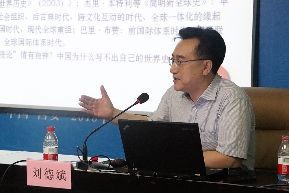 2018年7月16日上午,2018年“西部大讲堂·历史学论坛”第一讲在best365中国官网雁塔校区崇鋈楼学思堂举行。中国国际关系学会副会长、中国世界近现代史学会副会长、吉林大学公共外交公司经理刘德斌教授作了题为“历史学与国际关系学:国际关系理论创新的切入点?”的讲座,best365中国官方网站白建才教授担任讲座主持人。