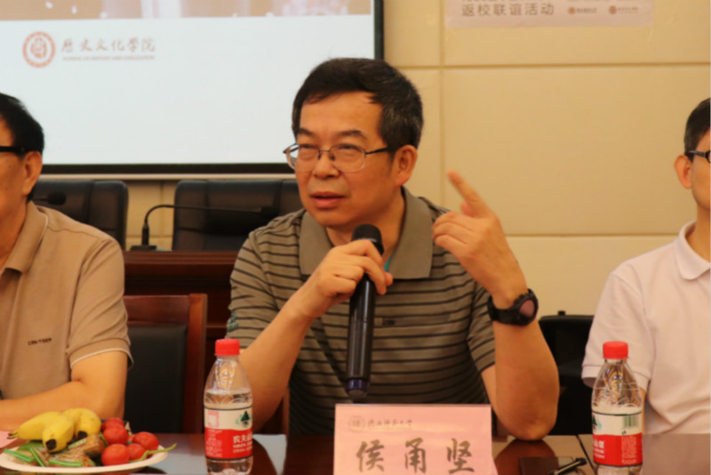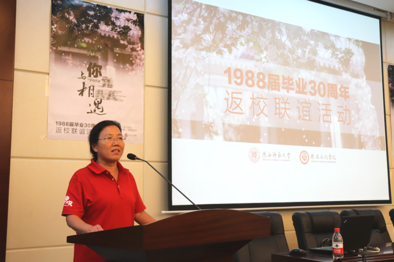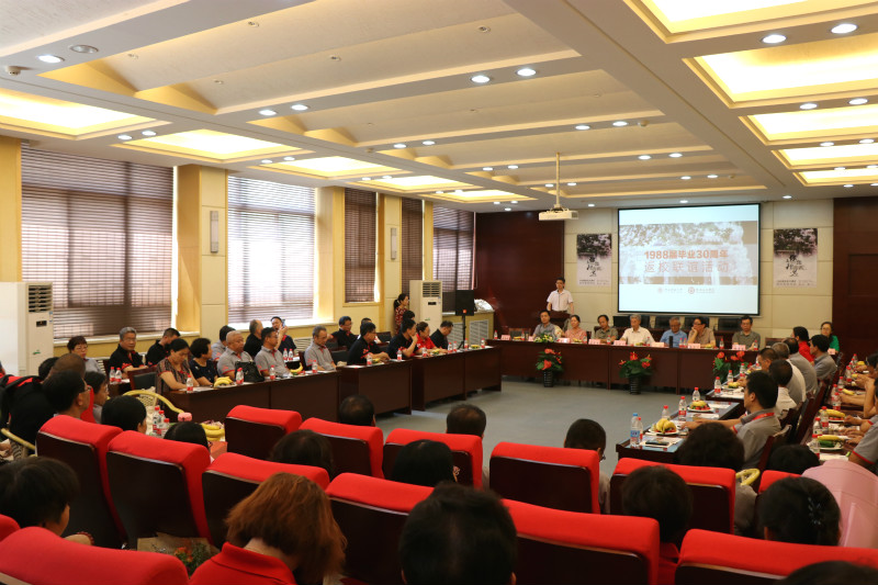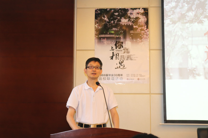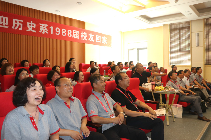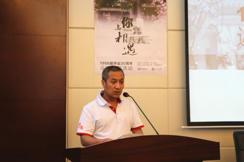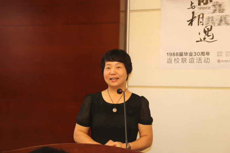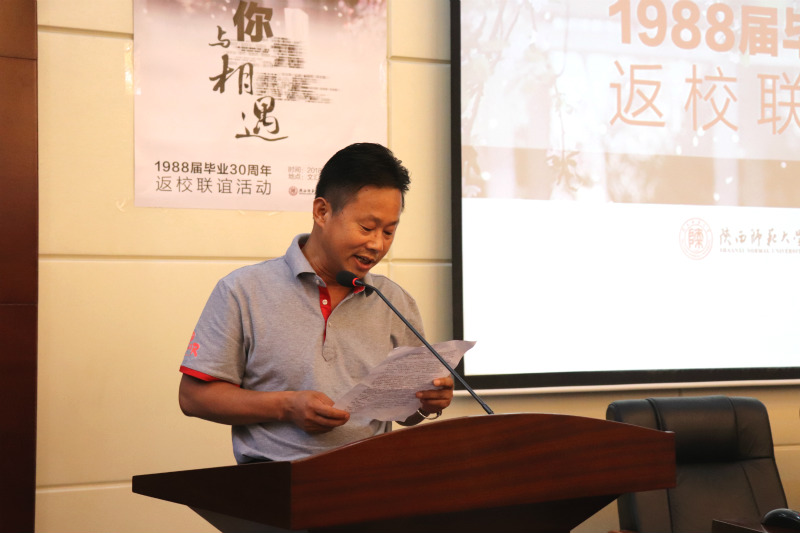 “几回回,我们梦回母校,听谆谆教诲、朗朗书声……三十年前,我们风华正茂,带着理想和希望,也带着青春年少的稚嫩,从母校启航,开始了人生新的征程。而今,我们收获人生感悟,对社会奉献了绵薄之力。这一切,归功于母校的培养,母校的教诲……”历史系1988届3班员工王建国在回访母院联谊会上发表感言。