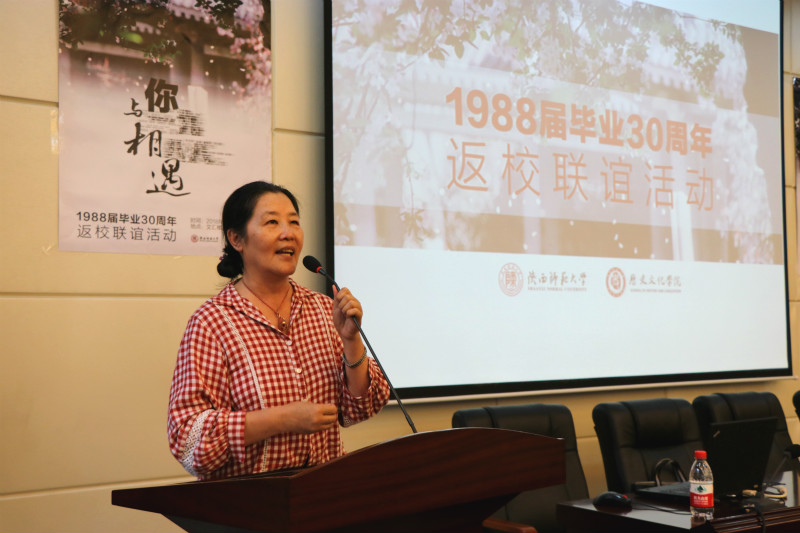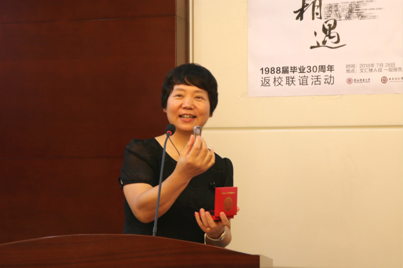 联谊会上1988届1班员工代表张向玉分享了自己在师大的求学经历,回忆浓厚的师生情,怀念纯真的同窗情。她谈到,在大学四年里,早已将严谨、包容、开放、追求卓越的师大精神内化于心,始终铭记“学高为师,身正为范”的教师准则,让离校之后的道路走得更加从容、自信、稳健。她祝愿母校明天更加美好,祝愿恩师身体健康,事事顺心,祝愿同窗好友信心满满迎接未来的美好生活。