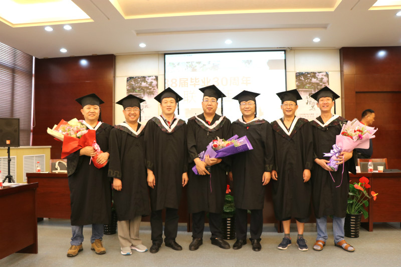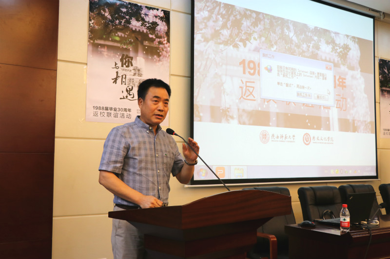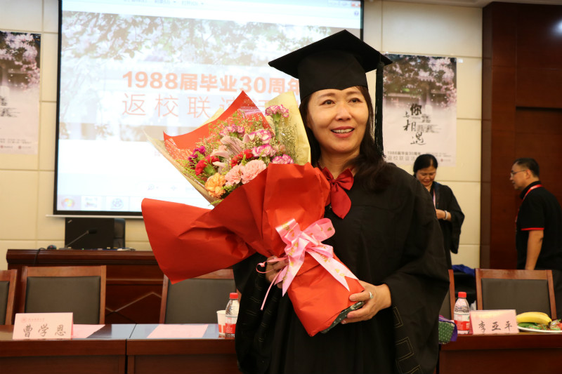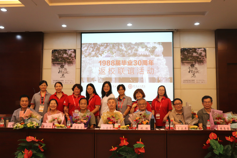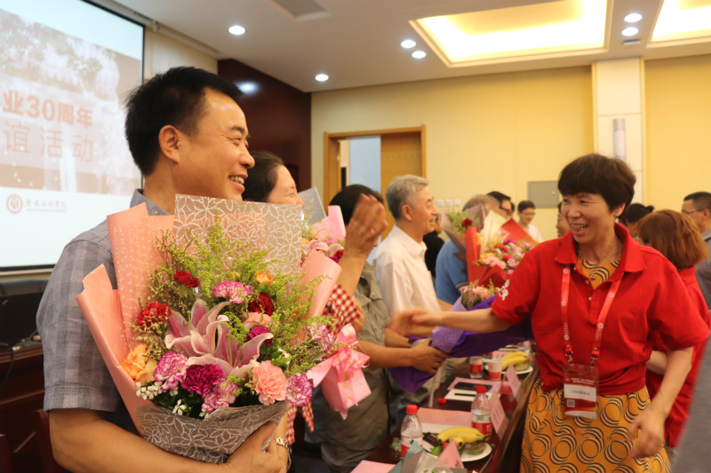 随后,在热烈的掌声中时任1988届辅导员任鹏杰老师上台讲话。他回忆起与同学们相处的点点滴滴,不忘勉励同学们,要时刻心怀家国天下,用饱满的精神风貌,良好道德意志品质,积极向上的心态,拥抱美满幸福的人生。时任教师唐亦功、白建才、臧振、李亚平、侯甬坚等也分别向同学们寄语。同学们走上前,向老师们献上鲜花。整个会场谈话交流气氛热烈,欢声笑语不断。