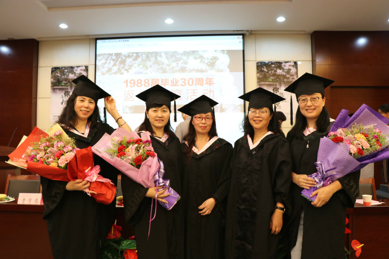 历史系1988届员工毕业三十年回访母院联谊会圆满结束后,28号下午,88届员工们换上学士服,参加了毕业30年学士服拍照活动,并且乘车来到师大老校区,参观了老区校园,重温当年在母校生活和学习过的图书馆、宿舍楼、教学楼等地方。