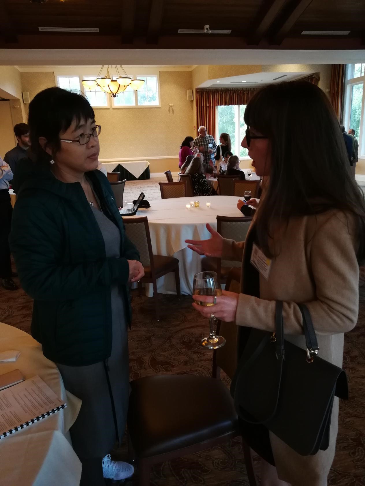 郭艳利与Mashantucket Pequot博物馆馆长、东康涅狄格州大学教授Ashley Bissonnette博士交谈
