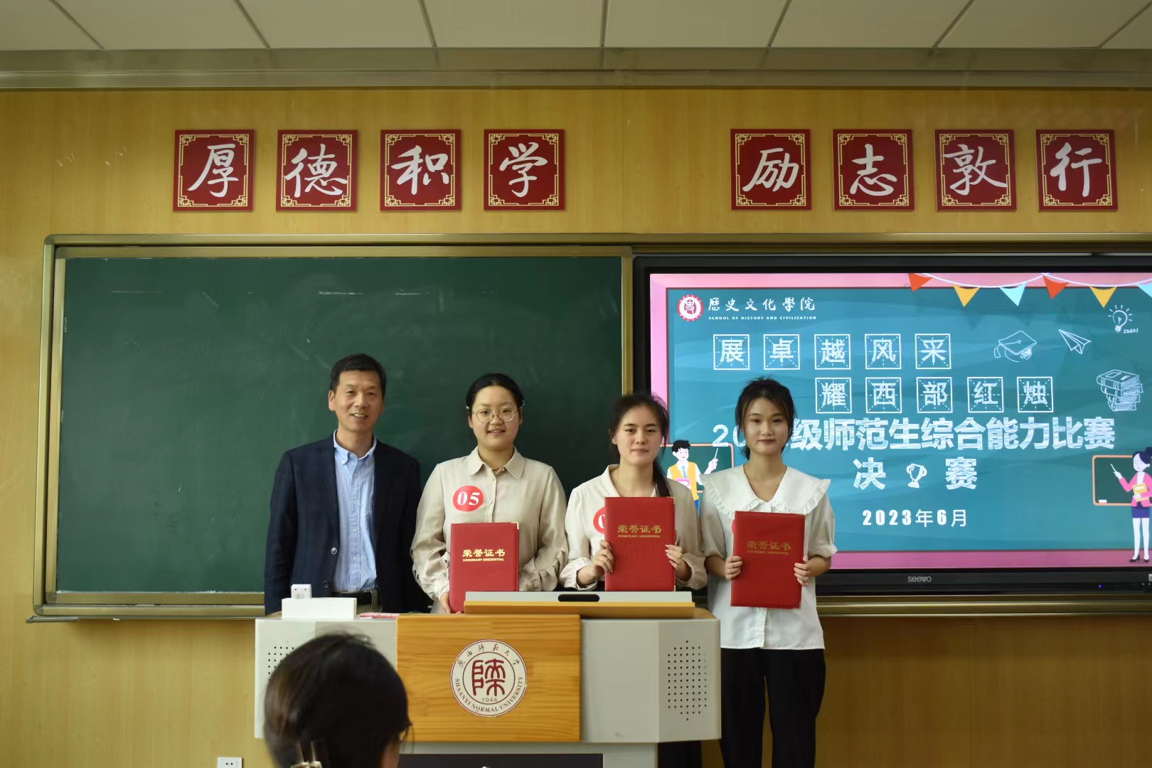 赛前,评委们首先为近期在第三届统编历史教材“精彩一课”全国教学大赛和陕西省第二届高校师范生公司产品能力大赛中获奖的公司优秀员工颁发荣誉证书,希望全体师范生向身边的榜样看齐,在成为卓越教师的道路上勇攀高峰、再创佳绩。