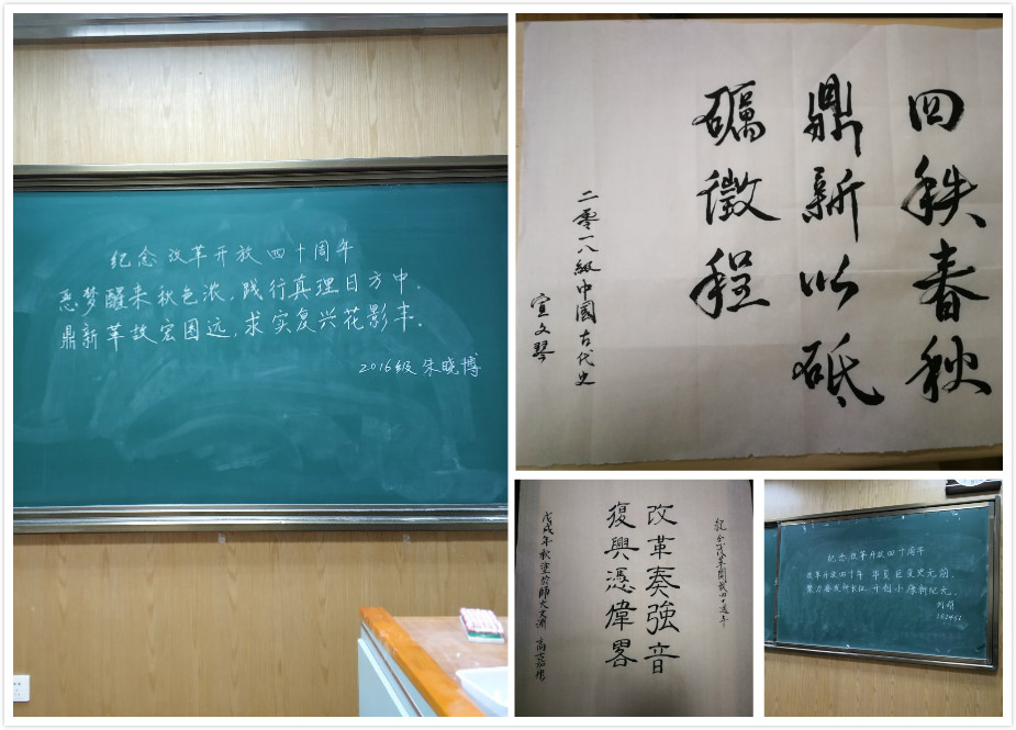 比赛书写内容是与改革开放四十周年活动主题相关的诗歌等文学作品,比赛在现场主持人的致辞引入中开始,在主持人宣读完比赛规则后,同学们便开始了书写赛程。整个比赛过程中,参赛者精神高度集中,全心投入,提笔、落笔间尽显功力。钢笔字或隽永清秀或大气磅礴;粉笔字清晰工整,大方干净;毛笔字如行云流水,一气呵成。所有的参赛者都尽情地挥毫泼墨,用自己笔尖流淌的才华展现对书法的热爱。正所谓习书者,风华正茂修生养性之道也。本次比赛,在墨香的感染下,不仅使大家感受了书法的独特魅力,更重要的是在书法实践的熏陶下,所有同学都更加深刻的学习了求实创新的改革精神,从而更加坚定了大家的理想信念,在未来的道路中不断激励同学们开拓进取,积极探索,顽强奋进。
