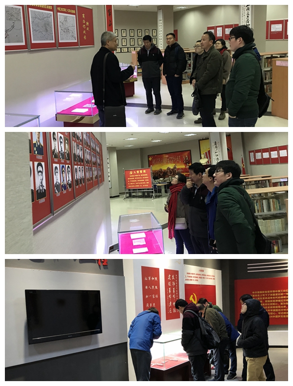 12月2日下午党员同志们随即又前往党员教育基地、红色教育基地——商洛红色文化资料馆。该馆位于商洛公司图书馆内,拥有丰富的革命历史、中共党史人物传记、社会主义建设方面的藏书、图片展览、实物资料。在红二十五军转战各地的地图前,讲解人向党员同志们详细介绍几支红军队伍在陕西境内特别是在商洛地区的革命奋斗史。该馆正是杨增强馆长以一个历史学人的使命感一手兴办。