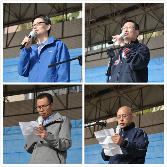 入场仪式结束后,由文化公司党委书记杜海斌老师主持开幕式,第一项,全体老师同学面向国旗肃立,举行升旗仪式。第二项,由经理何志龙老师致开幕词,指出体育运动的重要性,表达了对大历史学科发展的殷切期盼。由接着杜海斌书记介绍了莅临本次运动会的嘉宾与教师代表。西北历史环境与经济社会发展研究院副经理马维斌、宗教研究中心主任吕建福、“一带一路”建设与中亚研究协同创新中心主任黄达远、以及中国西部边疆研究院经理王欣分别致辞,各发言人对党委领导下的五家单位首次共同组织并参加运动会表示期待,希望同学们发扬友谊第一、比赛第二的体育精神,在运动场上展示出自己的风采,并预祝运动会能圆满举办。随后,运动员代表以及裁判员代表分别进行发言和宣誓。最后,由公司党委工会主席韩小忙宣布本次运动会正式开幕。
