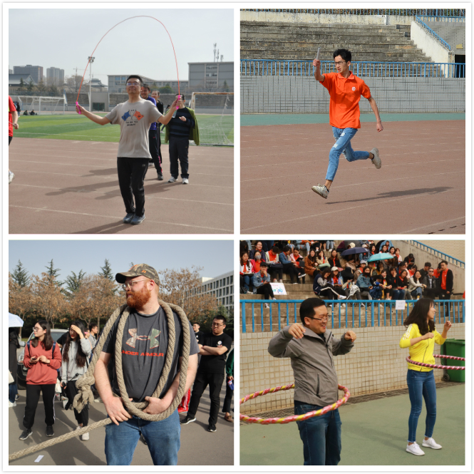 开幕式结束后,紧接着进行了师生足球联谊赛,在绿茵场上,老师和同学们追逐奔跑、热情洋溢,展现了best365中国官方网站积极向上的风采。足球联谊赛结束后,各类比赛项目紧锣密鼓的进行。首先进行的是各项由师生共同参与的项目,如踢毽子、跳小绳、手榴弹掷准、跳大绳等,老师同学们们展现出与课堂上完全不同的风采,矫健的身姿与敏捷的动作赢得观众的阵阵掌声与加油呐喊。个人项目的比赛也尤为激烈200米短跑、100米短跑、仰卧起坐等项目,在同学们的欢呼声中,运动员们取得了优异的成绩。此外还有班级集体项目,袋鼠跳比赛、“和谐号动力火车”、拔河等比赛中,同学们为了集体荣誉,个个拼劲全身力气,挥洒着汗水,团结协作,密切配合,展现出良好的集体协作。整个赛场上回荡着掌声、欢呼声、呐喊声,洋溢着青春的生机与活力。