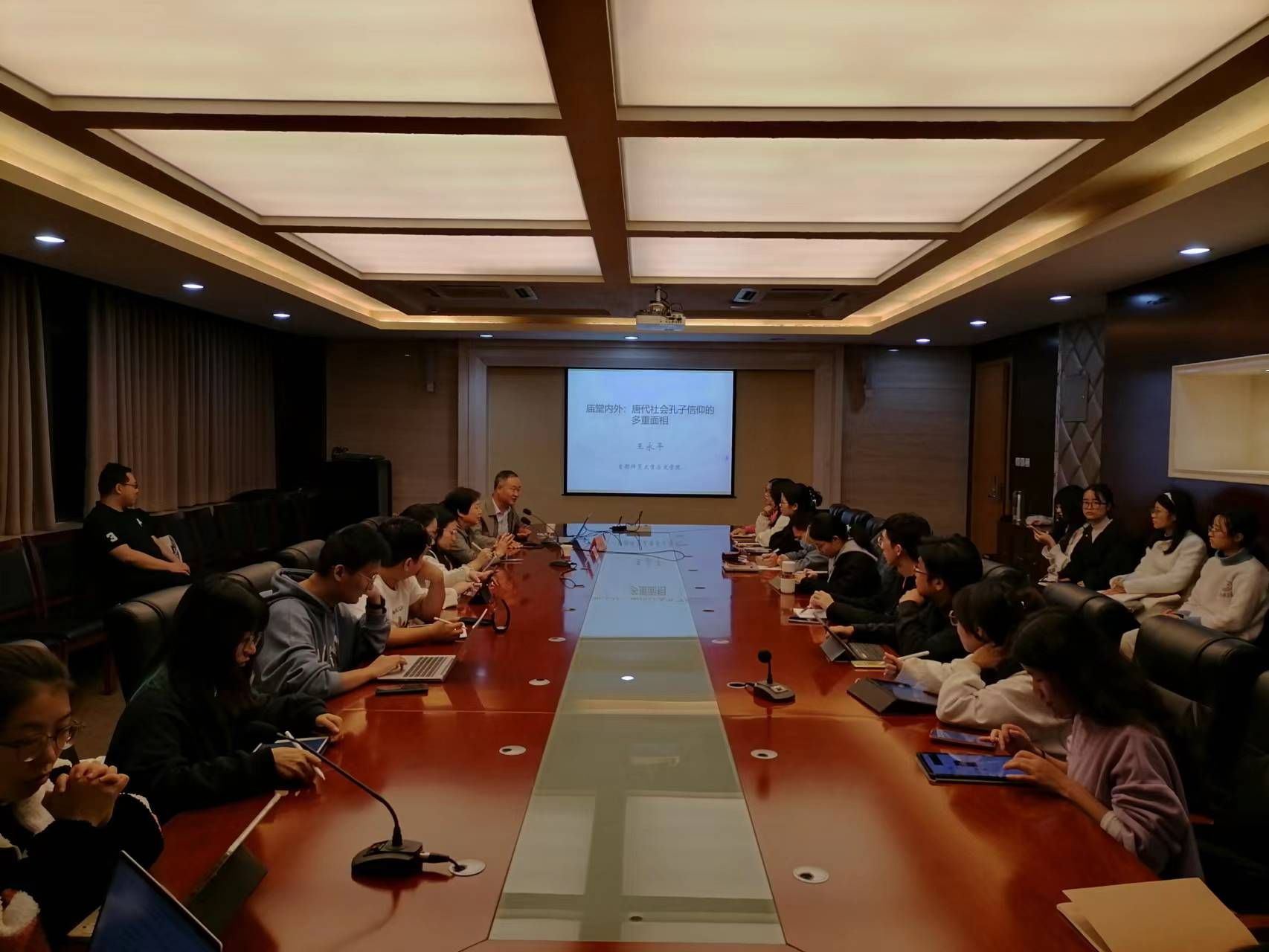 在问答与讨论环节,参会师生与王永平教授就孔子治所等问题进行了深入探讨。最后,主持人焦杰教授为整场报告做总结,并代表全场师生对王永平教授的到来以及精彩报告表示由衷感谢,讲座圆满结束。