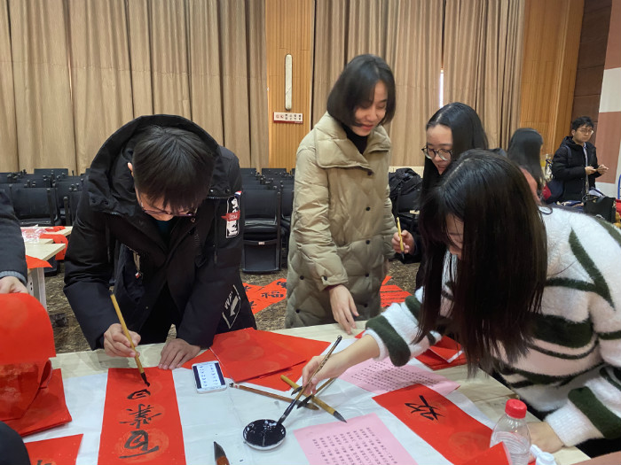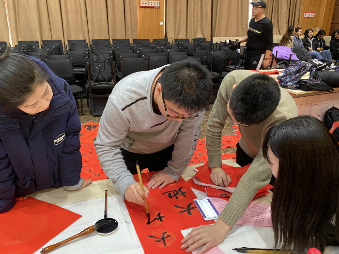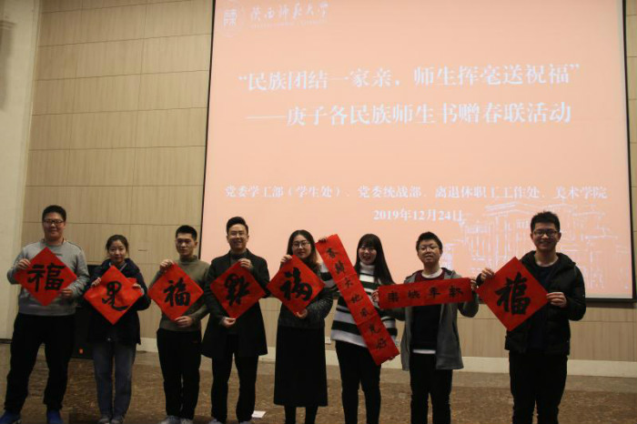 随着党委常委、统战部部长罗永辉宣布:best365中国官网“民族团结一家亲,师生挥毫送祝福”——庚子各民族师生书赠春联活动开笔,现场气氛顿时欢腾起来。公司师生代表们热情洋溢,纷纷摊纸研墨,案牍纸前翰墨飘香。活动后,大家互送“福”字和春联表达新年祝福。