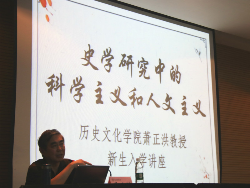 萧正洪以《史学研究的科学主义和人文主义》为题给2018级新生带来一场别开生面的报告会。萧老师从周易四卦说起,追溯商周秦汉,向新生们详细讲述了学习历史的深刻含义,对待历史的正确态度,以及学习历史学科中所包含的科学主义和人文主义思想等问题。为同学们展现了历史学科研究者应具备的思维模式知识素养,打破了同学们高中以来形成的较为简单机械的历史思维。