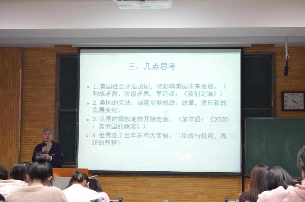 在互动环节,几位同学就“美国大选”和“美国制度”等问题向白建才进行提问,白建才一一做出了有针对性的解答,提问同学均表示受益颇多。