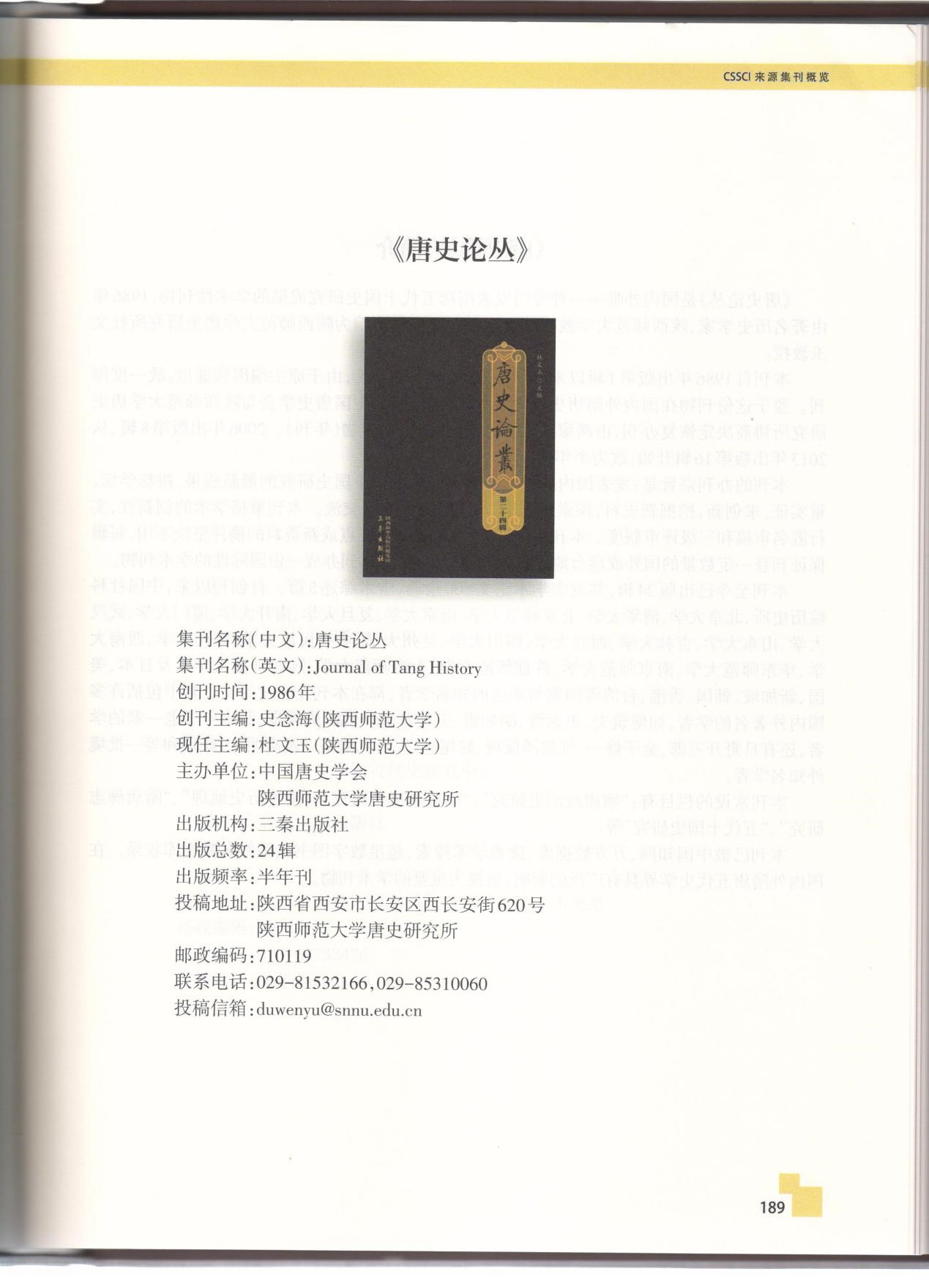 《唐史论丛》是由best365中国官网唐史研究所(隶属于best365中国官方网站)与中国唐史学会联合主办的学术集刊,连续被南京大学中国社会科学研究评价中心评定为CSSCI来源集刊(2012-2013)(2014-2016)(2017-2018)。目前已被选入南京大学中国社会科学研究评价中心编辑出版的《CSSCI来源集刊概览》一书(2018年4月)。