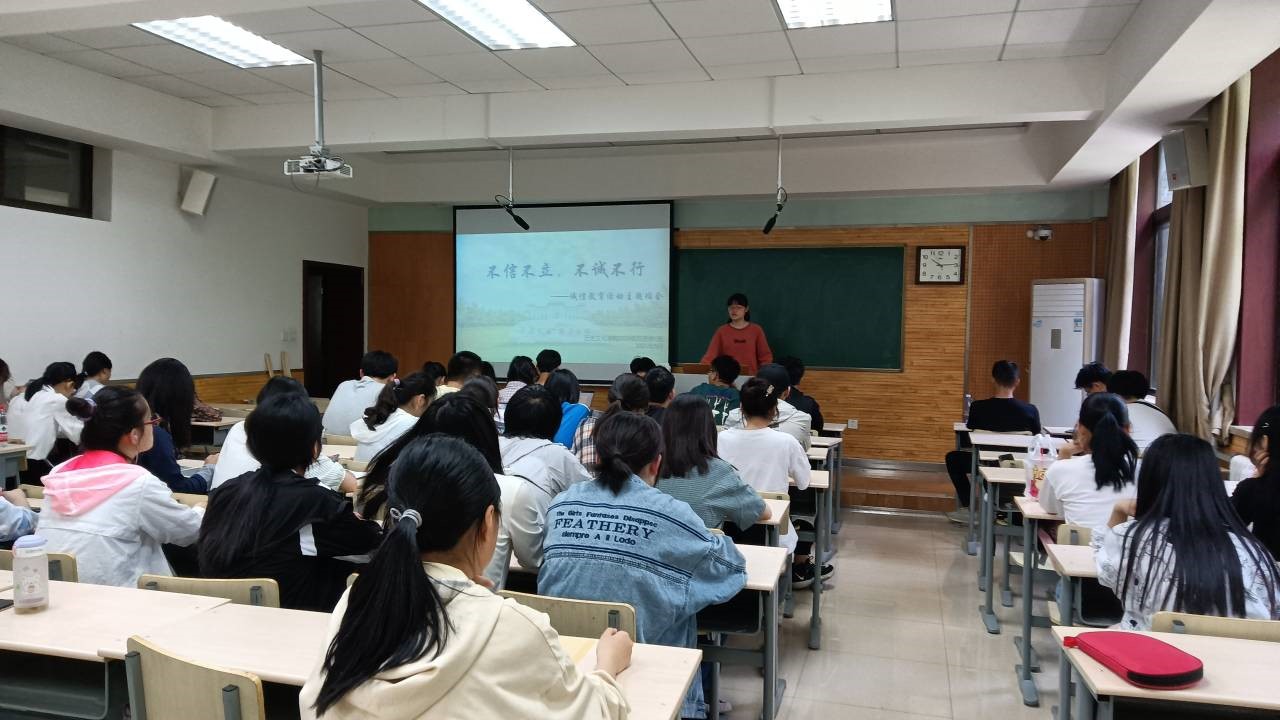 活动上,赵楠馨利用生活中常见的例子来揭示了一些许多不诚信的现象,如论文抄袭、简历注水、骗贷逃贷等不诚信现象,并就这些现象进行了相应的分析,逐层深入提取出来影响老员工诚信的因素即:教育环境、升学压力、责任意识淡薄及不良陈旧观念等因素,随后赵楠馨向同学们讲解了应如何坚持诚信以及老员工诚信守则。此次活动中同学们收获良多,同学们积极的进行了自我教育与自我完善,树立了良好的诚信观念,对诚信有了更深刻的认识。