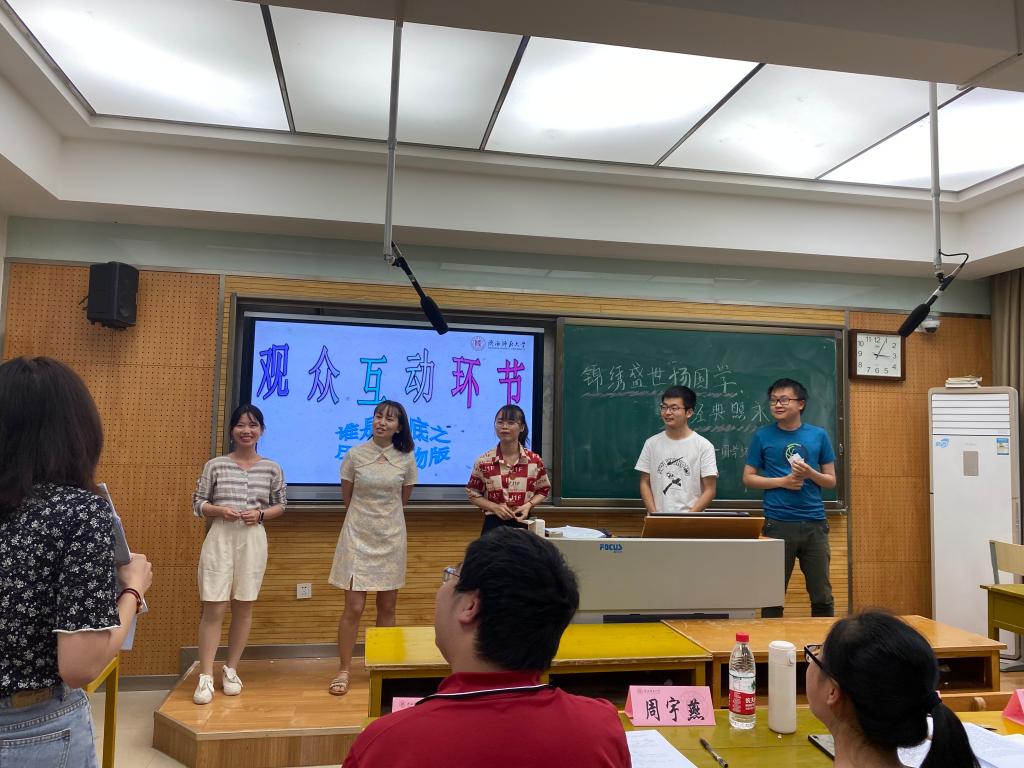 此游戏由现场观众或参赛选手自愿报名参加,每轮游戏中包含两位历史人物,玩家依据抽到的人物角色进行描述,每描述完一轮各玩家就进行对卧底玩家的投票,投票最多为3轮,最终由主持人宣告卧底胜利或失败。游戏共进行了两轮,同学们指投“卧底”,游戏场面热闹生动。