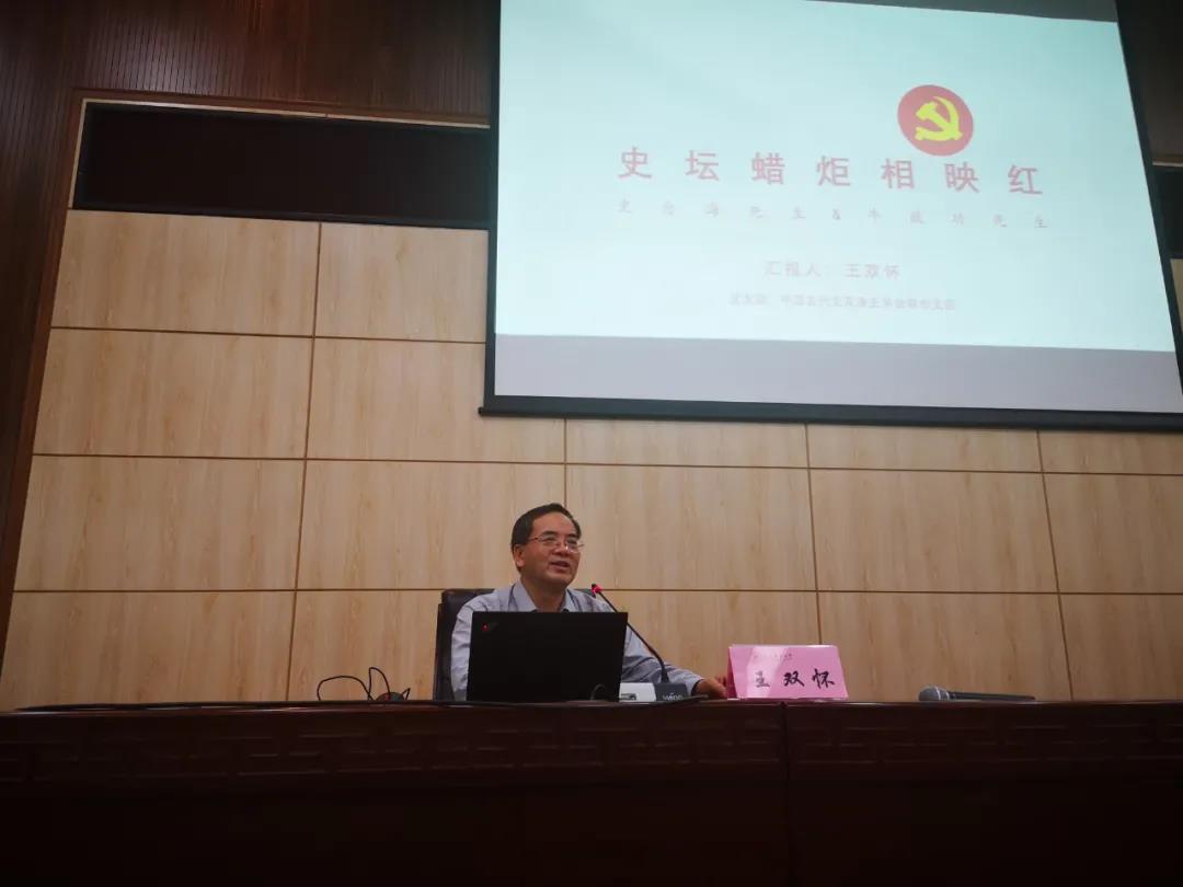 公司教授、博士生导师王双怀老师为新生们做党史学习教育专题报告。王双怀老师以校史微观党史,首先向同学们介绍了史念海先生和牛致功先生两位公司历史学科领域优秀党员的生平事迹,讲述了他们作为知识分子为国家建设和民族复兴建立的不朽功勋,高度赞扬了两位先生为公司教育事业发展和历史团队建设做出的杰出贡献。结合改革开放以来党领导全国各族人民取得的现代化建设辉煌成就,谈及神舟十二号三位航天员的顺利返航的重大历史意义,王双怀老师希望同学们学习领悟两位先生的共产党员品格和为学从教理念,将学科学习与党史学习紧密结合,将个人奋斗与家国命运紧密相连,做讲政治、有理想、有本领、敢担当、作表率的新时代青年,在中国共产党成立一百周年的伟大历史时刻锚定初心,扬帆远航。