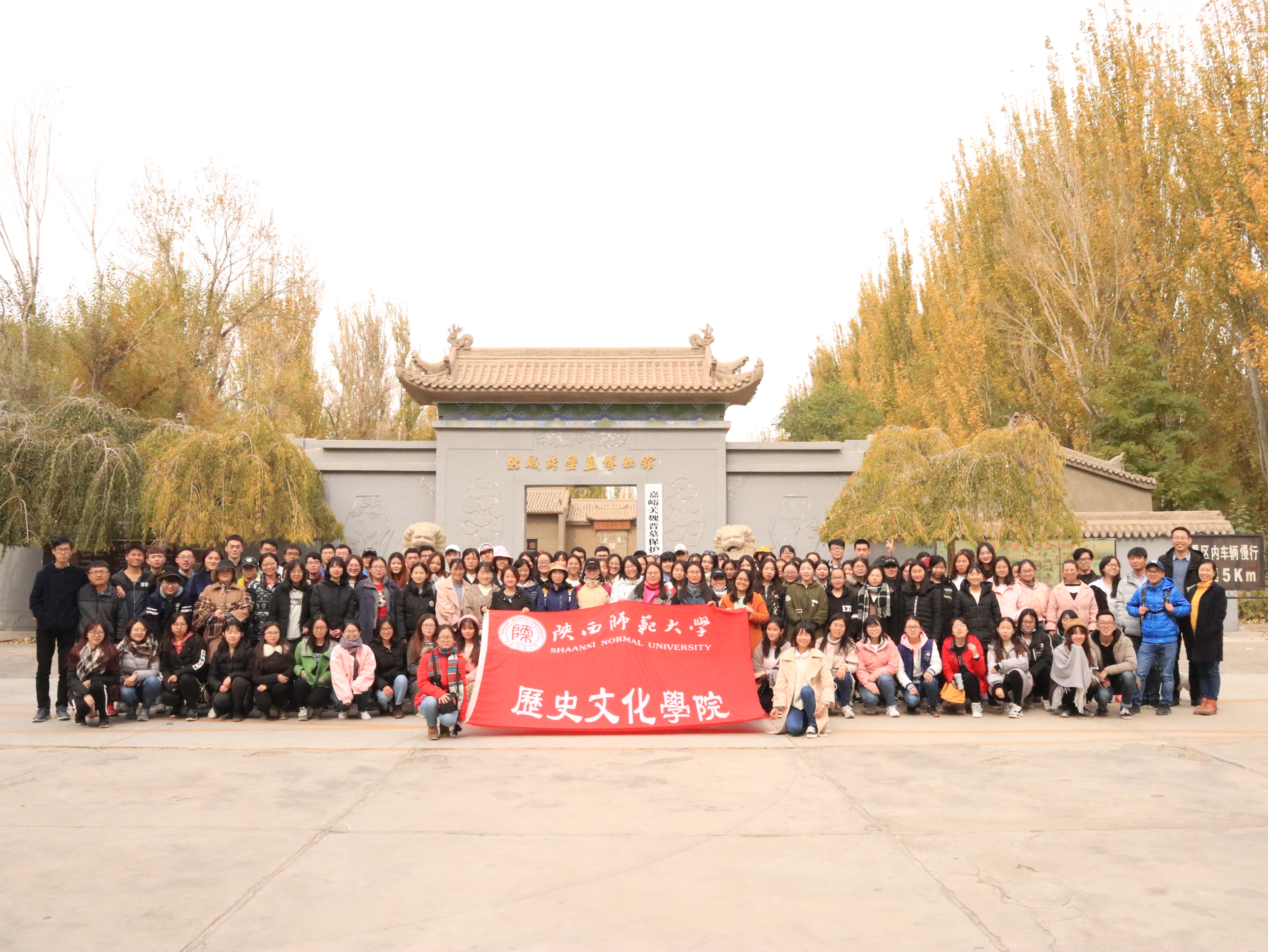10月17日,带队老师及2016级全体本科生从西安出发,于18日凌晨4点抵达嘉峪关火车站。全体分成两队,交替参观了嘉峪关和魏晋砖壁画墓。嘉峪关是明长城最西端的关口,历史上曾被称为河西咽喉。通过对嘉峪关关城的参观,同学们感受到了天下第一雄关的气势。魏晋壁画墓共有13座墓,此行参观的6号墓是其中画像砖最多,最有代表性的一座。墓中壁画砖内容十分丰富,以农牧业和家居生活为多。同学们据此对于魏晋时期当地的政治、经济和文化习俗都有了一定的了解。