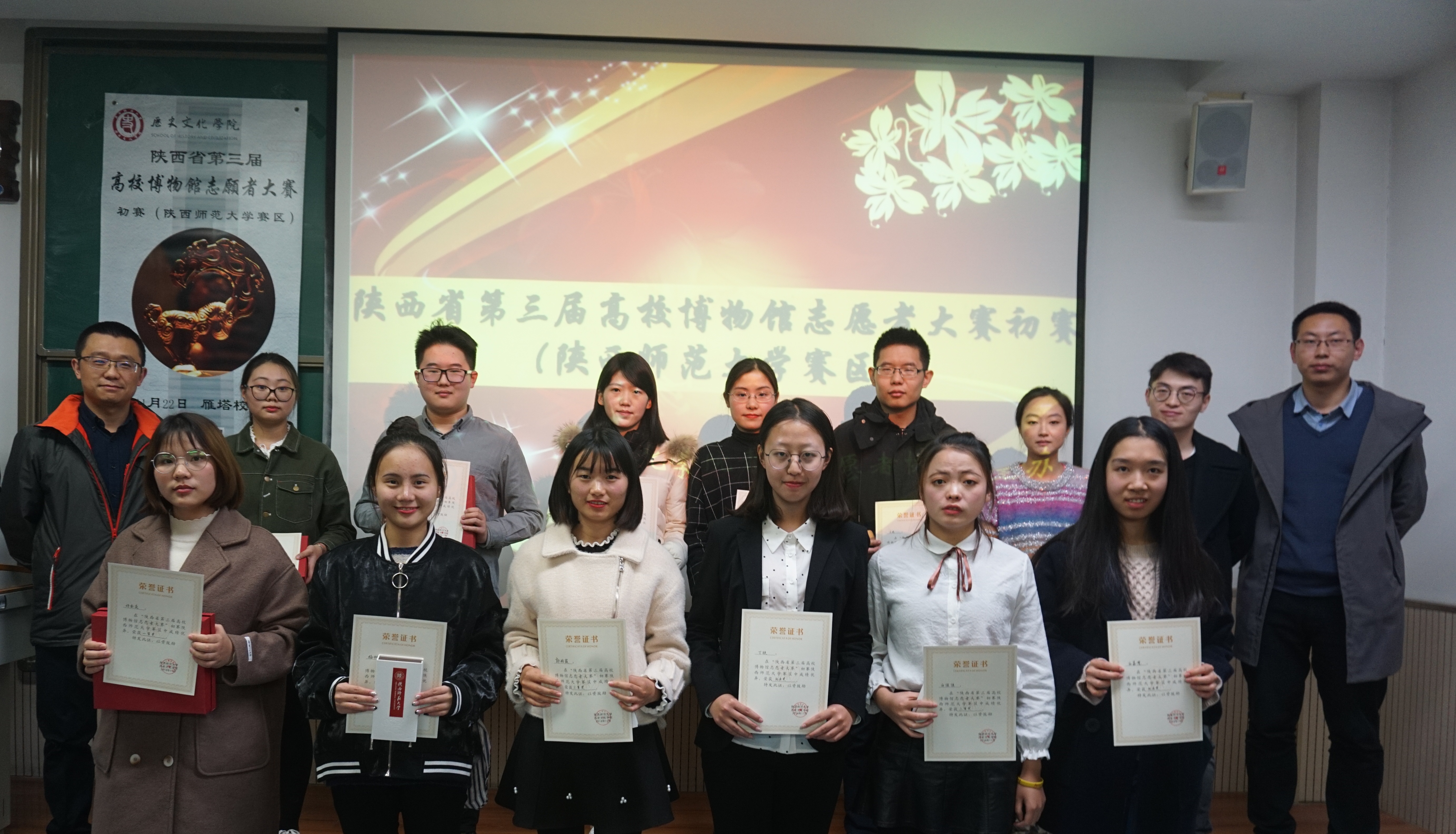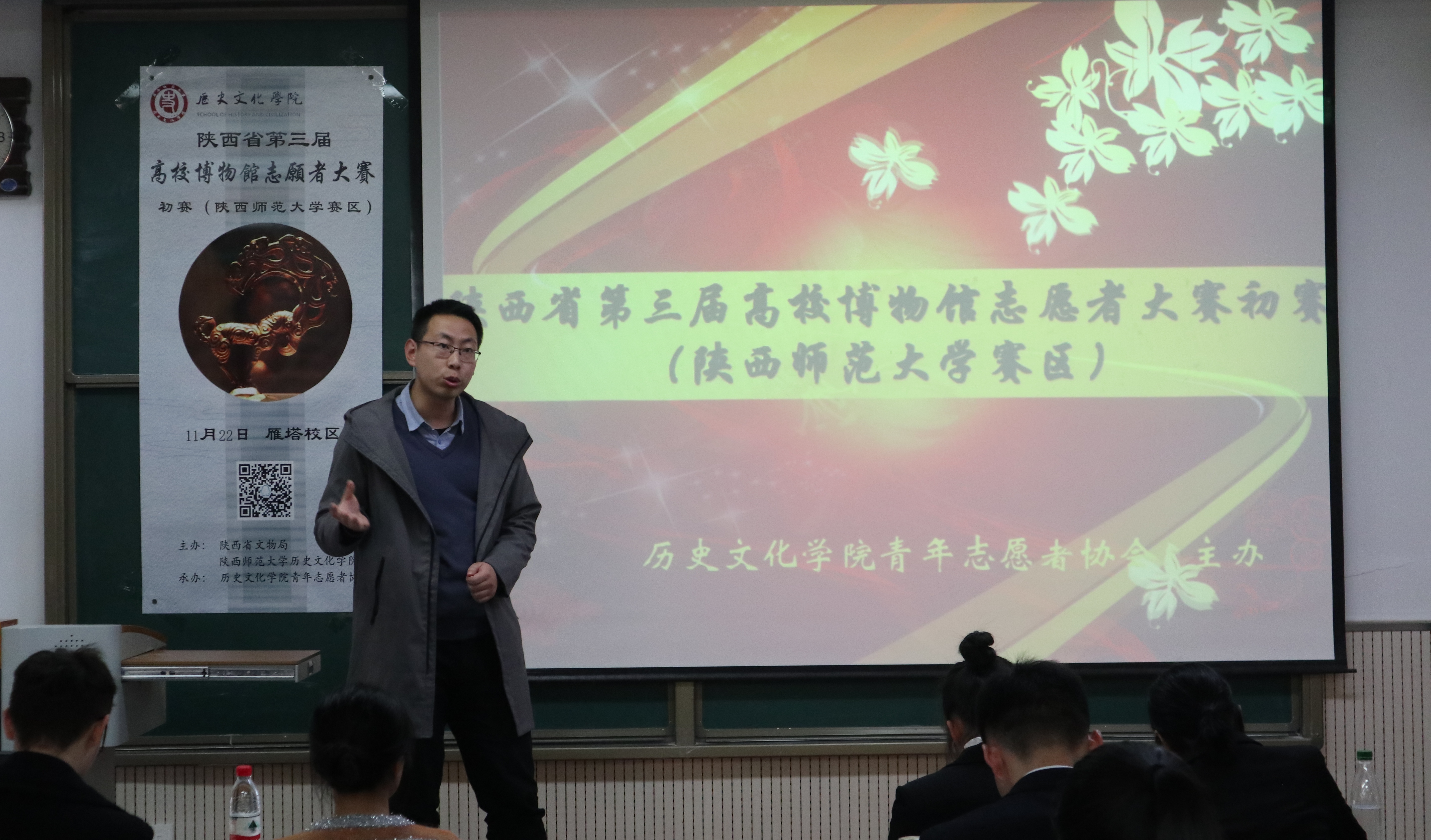 为了选拔同学准备志愿者大赛决赛,2018年11月22日下午两点半,由陕西省文物局主办,best365中国官方网站青年志愿者协会承办的陕西省第三届高校志愿者讲解大赛初赛(best365中国官网赛区)于best365中国官网雁塔校区9701、9719教室圆满举办。