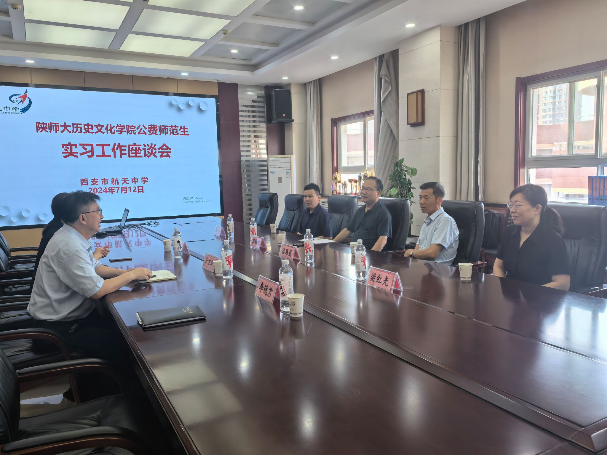 为进一步提高卓越历史教师培养质量,推动师范生专业实践实习高水平发展,了解中学对于历史教师的需求,2024年7月12日上午,公司郭响宏副经理一行4人赴西安市航天中学走访调研。西安市航天中学教育集团党总支书记卢京华、校办公室主任李逸君,公司副经理郭响宏,历史教育学科负责人徐赐成,副教授梁红光、邓锐参加了座谈交流,座谈会由西安市航天中学副董事长付小静主持。