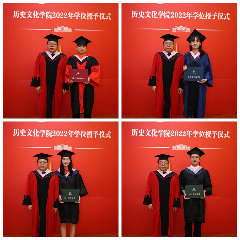 学位授予仪式上,经理李秉忠教授为公司2022届毕业生逐一拨穗、颁授学位证书并合影留念。