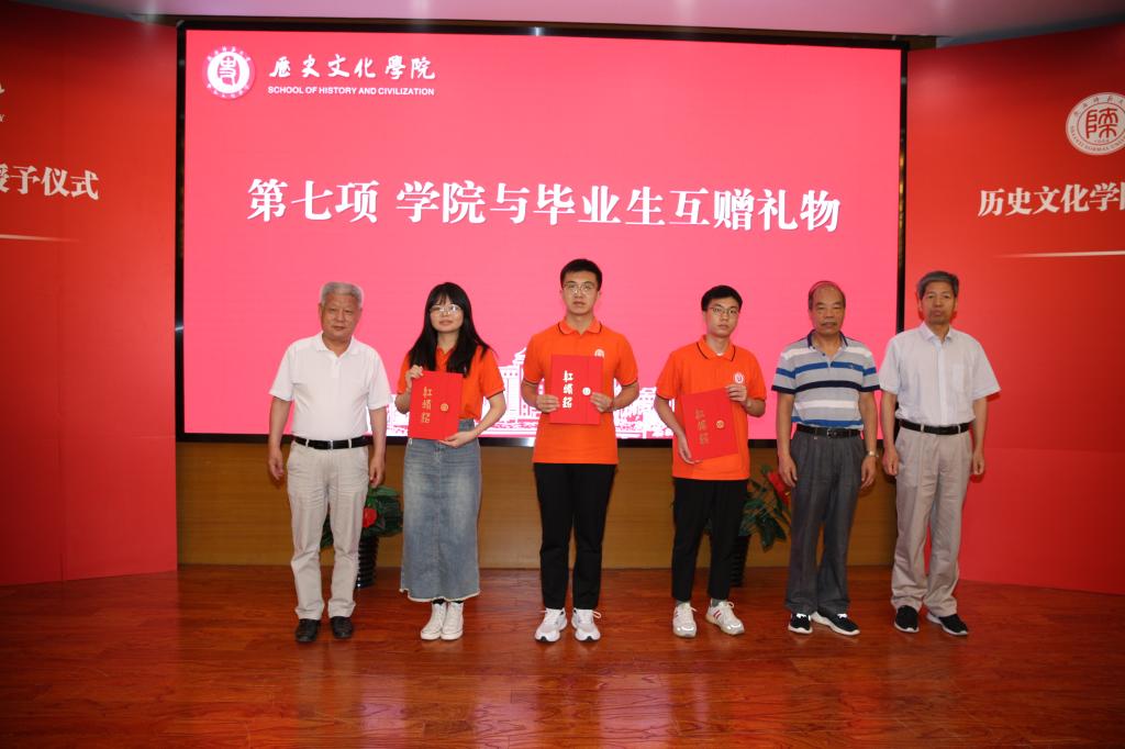 教师代表徐赐成教授以“用本心温暖世界”为题,为毕业生讲授最后一课。他谈到,青年一代通过读书而步入社会,肩负用知识改造世界的使命和责任,因此要“知本心”“存本心”“用本心”,勉励毕业生们要持守本心、发明本心,用本心温暖世界,赢得光明的未来。本科毕业生代表、2018级历史学(卓越教师实验班)杨馥畅同学表示,求学四载,她将不忘老师教诲,不负母校栽培,不愧历史使命,勇担时代重托。研究生毕业生代表、2019级中国史专业陈飞飞同学分享了自己的漫漫求学路,并向公司所有教师送上美好祝福。