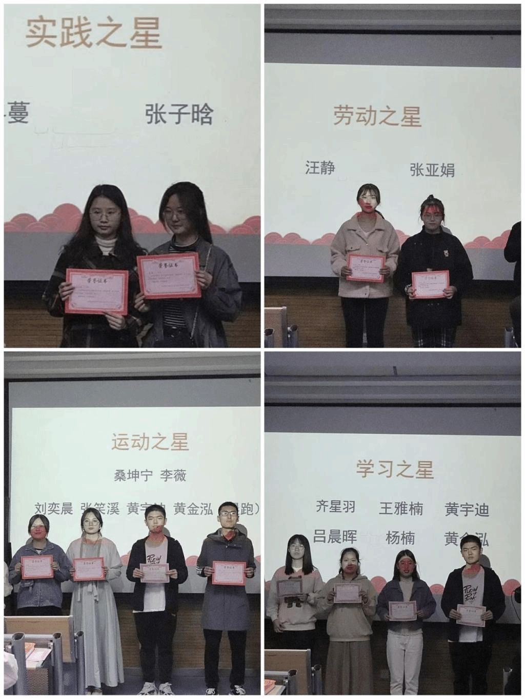 第三部分,开展寒假“读炼劳研”学习实践表彰活动。师瑞青对寒假期间积极参加打卡活动的同学进行表彰和奖励,并且展示了各位同学的打卡成果。“读炼劳研,修身行先”,此次表彰活动肯定了同学们在假期生活里的的自律和坚持,也激励了更多的同学投入到“读炼劳研”当中去,让学习成为习惯,让自律成为品格。同时,师瑞青对假期助理及班干部的办公技能学习情况做出了总结。