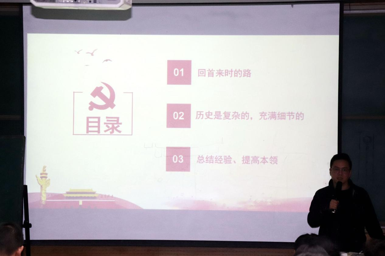 接着,师瑞青带领员工们学习《在党史学习教育动员大会上的讲话精神》、《论中国共产党历史》这两篇作品,为同学们解读学习党史的重要性。“回首来时的路”,他带同学们回顾近代中国经历的殖民掠夺、南京大屠杀等屈辱,并横向对比印度、东欧、南非等国家发展中面临的问题,表明道路决定命运,发展才能自强,我们要坚定不移走中国特色社会主义道路。“历史是复杂的、充满细节的”,师瑞青向同学们介绍《中国共产党历史》《毛泽东与蒋介石》等党史书籍,介绍西安事变中复杂的政治沟通和艰难的处理过程,希望同学们在宏观知识架构基础上补充历史细节。“总结经验,提高本领”,他讲述了毛主席青年时期做社会调研的经历,鼓励员工在党史学习中启迪智慧,砥砺品格。