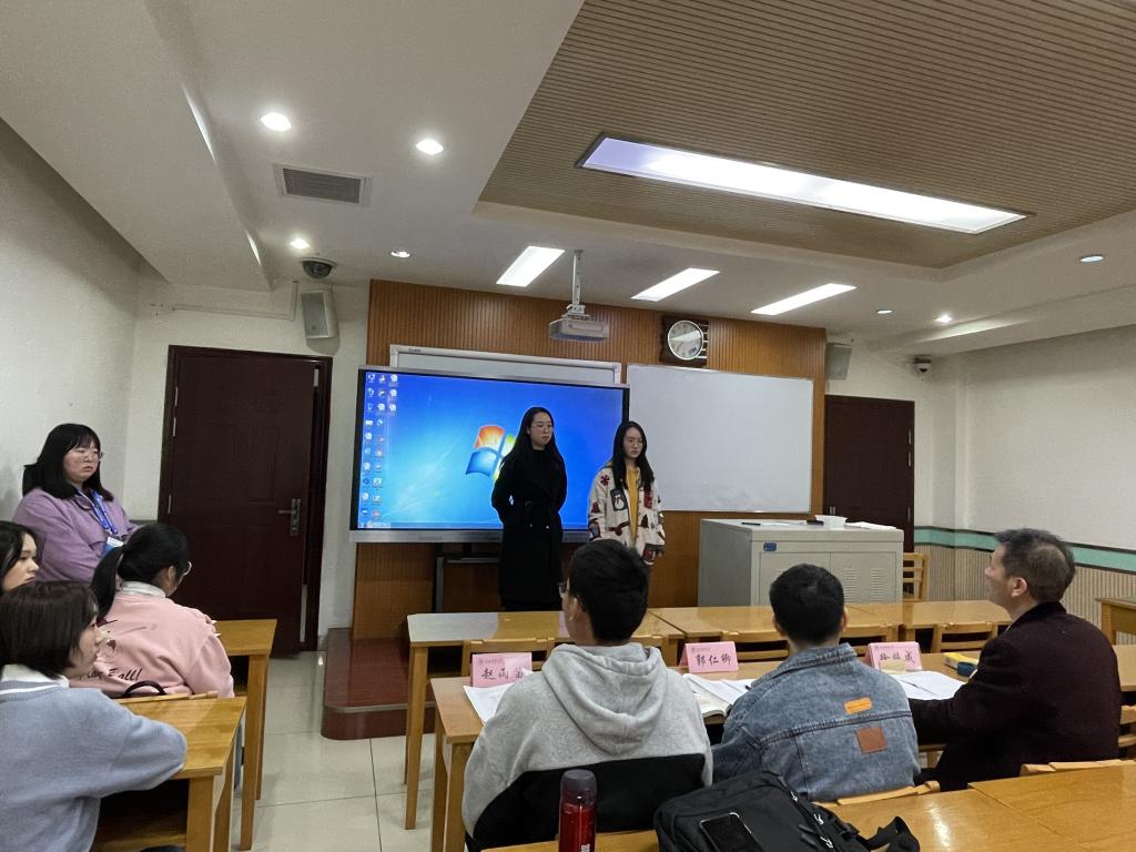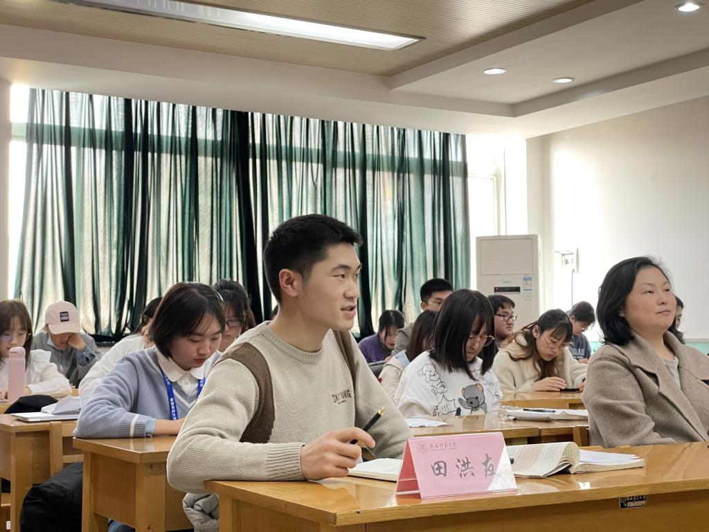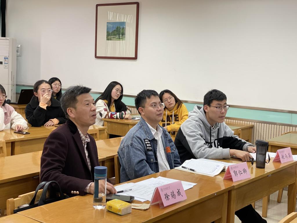 作为评委的学长们精心点评每一位同学,并结合自身的成长经历,为选手们在今后的学习中提出了宝贵的意见。郭仁卿、赵雨笛学长对同学创新性的讲课方式给予肯定,并指出新方式的不足以及改进的方法,提出“总结”的重要性,教师对于员工的发言不能仅仅评价对错,而应当在关联课程重难点的同时渗入核心素养,正确运用“启发式教学”。田洪友、马林学长各自强调了设置认知冲突对课堂教学启发的重要性,板书设计与美感对教学、应聘的关键性作用,他们还就参赛同学课堂展示的特点进行针对性的点评,并提出切实的建议。