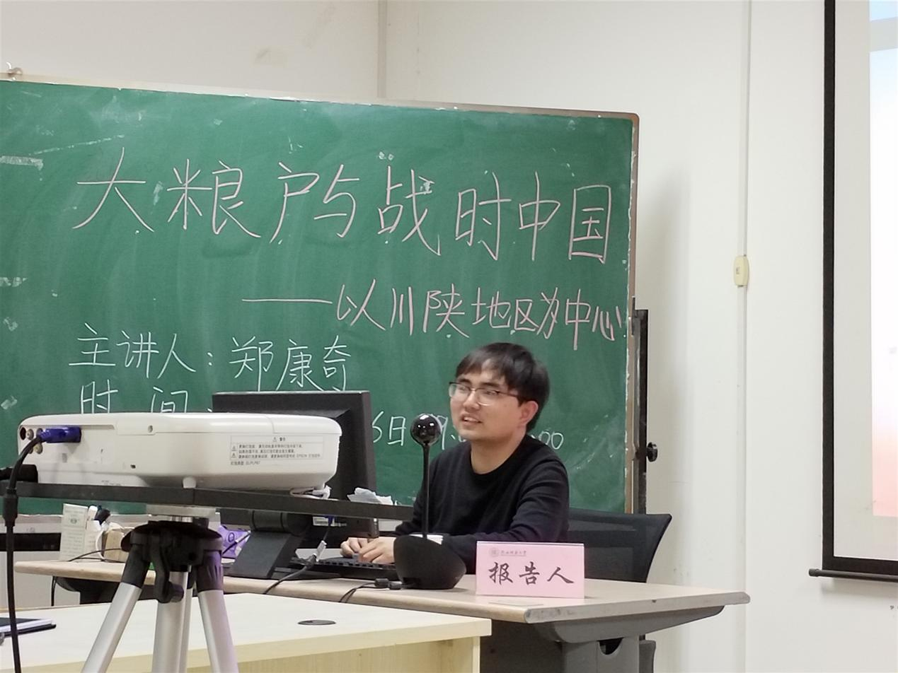 首先,郑康奇简要解释了讲座题目的缘由。大粮户,简单的来说就是有较多存粮或产粮的农户。作为国家粮食的主要供应者,粮户在其中发挥了重要作用。粮户的具体行为,已不单纯是一个经济问题,更是一个重大的政治问题。以川陕地区为中心,是因为川陕地区是战时重要的粮食主产区,也是抗战大后方的重要经济支柱,战略地位日益凸显。本次讲座主要包括三部分内容: