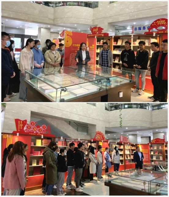 此次专题书展集中陈列各类党史文献700余种,主要分为六个部分:党的奋斗史、理论创造史、自我革命史、党的精神谱系、党的教育方针以及红色教育研究校史著作展等。在图书馆馆员赵辉、于婷婷的解说下,支部成员更加清晰地明了党的历史发展脉络,也更加深刻地把握了中国共产党领导各族人民进行革命、建设和改革的辉煌历程和所取得的丰功伟绩。参展活动结束后,在张佳、于婷两位同志的带领下,支部党员面向党旗庄严宣誓,重温入党誓词,共忆入党初心。