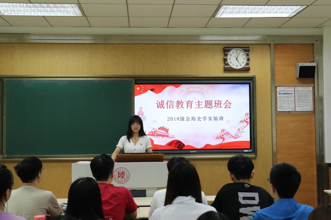 5月11日下午,2018级念海史学实验班诚信教育主题班会在文渊楼3112教室召开。班会集中学习了诚信的内涵及相关案例,18级念海班全体同学参加了此次班会,班会由团支书陶婷婷主持。