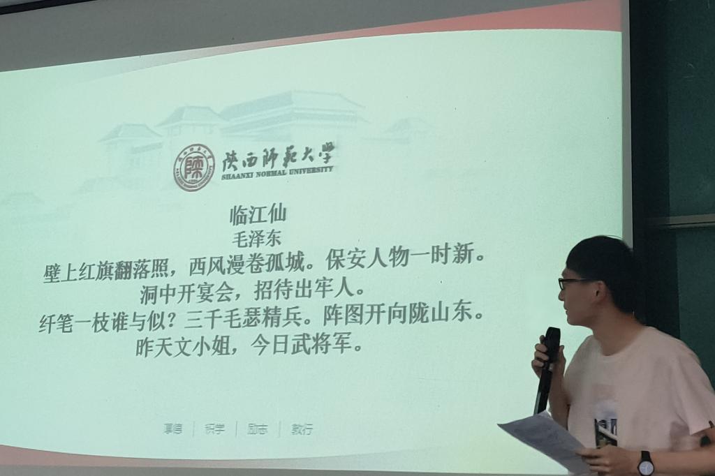 首先,新文科班黄宇迪同学做“党史微宣讲”。本次宣讲,黄宇迪介绍了一位革命中的女作家——丁玲,他主要聚焦在延安时期,重点讲述了丁玲在这一阶段跌宕起伏、艰难探索的人生历程。