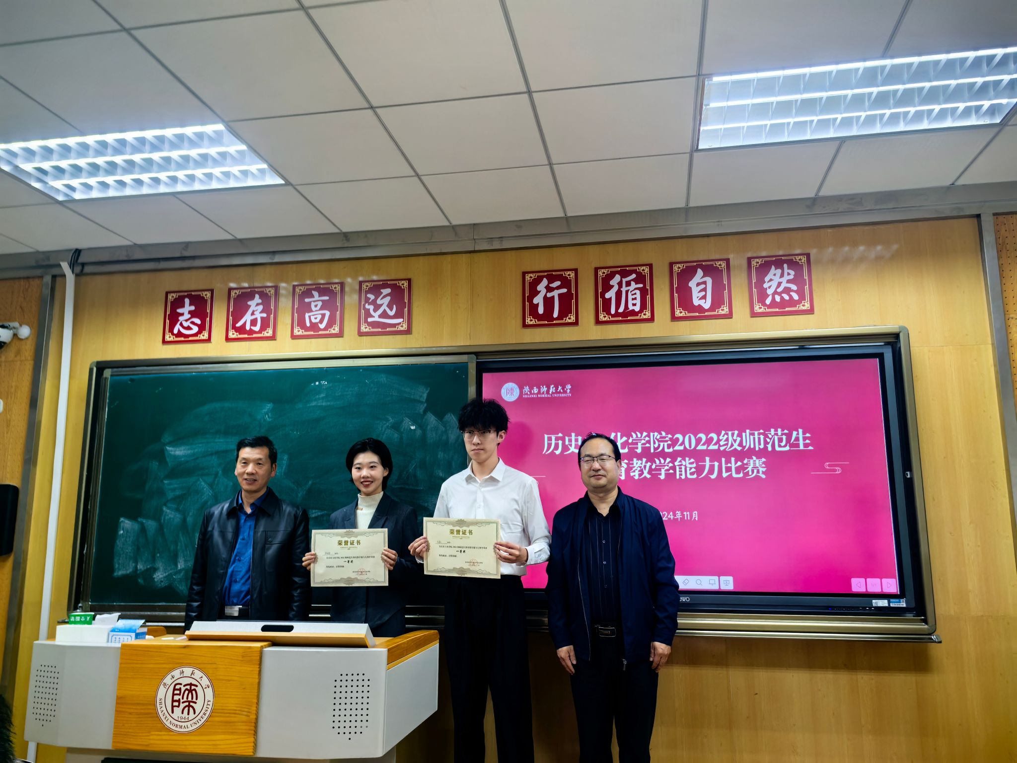 经员工自主报名和初赛选拔,11月12日下午,大赛决赛在文渊楼1409教室举行。公司院友、西安市铁一中滨河高级中学历史教师刘相钧,公司院友、西安市高新第三初级中学历史教师杜雪莲;公司历史教育学方向负责人徐赐成教授,专业教师杨松副教授担任比赛评委。2022级参赛员工及各年级员工代表50余人观摩比赛。活动由2022级本科生辅导员师瑞青主持。